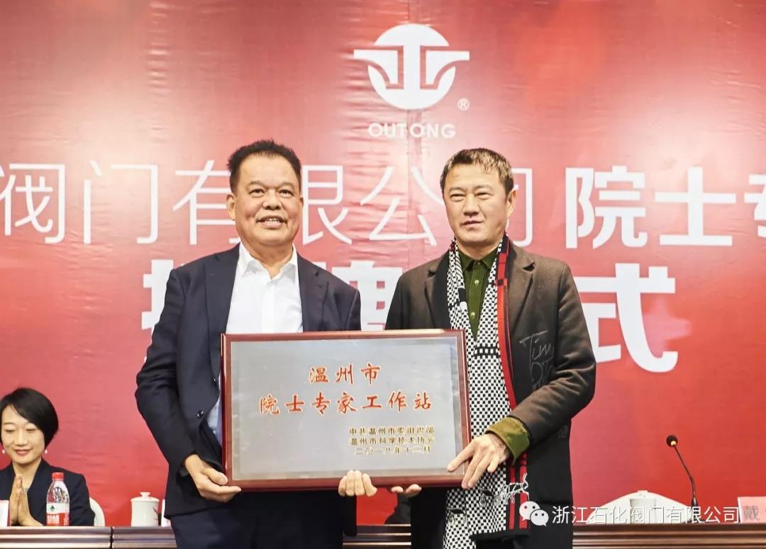 溫州市科協(xié)副主席戴維文向浙江石化閥門有限公司董事長(zhǎng)楊榮水先生頒授“院士專家工作站”牌匾,浙江石化閥門有限公司總經(jīng)理?xiàng)钸x榮向中國(guó)工程院陳學(xué)東院士頒發(fā)聘書,就此,院士工作站正式建站。