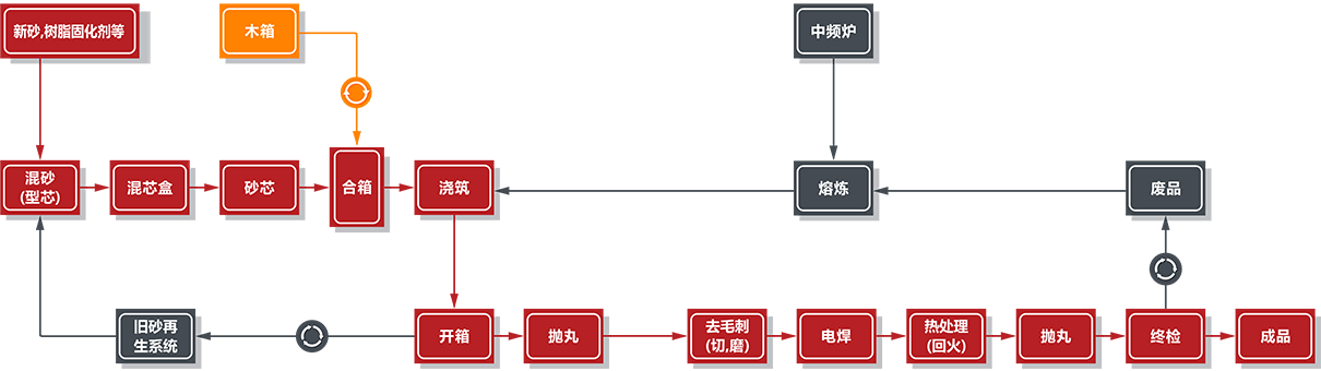 公司產(chǎn)品采用先進的堿性酚醛樹脂砂生產(chǎn)工藝,配備有中頻爐6噸1臺、3噸2臺、1噸1臺,50噸和20噸天燃氣熱處理爐各一套、10噸電阻熱處理爐2臺。配備有現(xiàn)代化的檢測和材料試驗設(shè)備:直讀式光譜分析儀、金相分析儀、機械性能試驗、低溫沖擊試驗、MT、PT、UT、RT等完善的檢測設(shè)備,由專職檢驗人員進行分析和檢測,以確??蛻魧﹁T件質(zhì)量的要求。